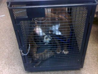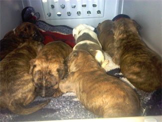 While at the Devore shelter I also pulled a mama pittie and her 7 puppies from the shelter. She looked to be very young and this is maybe her first litter. They are only a week and a half old, too young to be moving around, but if there are to live they have to get out of the shelter now. An independent rescuer named P.J. will be fostering them until they are old enough for adoption. They looked healthy at this point and I told them to call me if they need any advice on their care. I know that I left them in very capable and loving hands.