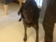 As you can see from the photos, Laughy would not stay still to have his picture taken. He was so happy to be outside and out of the shelter and had so much energy. He was like the Energizer bunny. When it came time to load him in the kennel, he wanted no part of that. Maybe he thought he was off to the vets to get fixed again. After a lot of persuasion and certain kinds of treats he was loaded up and ready to go. Not a peep out of him during the trip. He just looked out the window and wanted to be part of the world as it went by. When we arrived at Top Dog Boarding he was ready to go again, so we took him inside. I know he was kind of disappointed in not having grass to play in, but that will come later when we get him a home with all the trimmings. Have patience big guy, your time is coming soon, I promise.