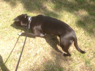 These two are the perfect reason why things must be checked out before I pull dogs from any shelter. Both were pulled from L.A. shelters over a year ago and placed at a “rescue”, which it turns out was all about taking money, but not so much about adoptions. Here they sat, in kennels for a year forgotten about by all but a few. Finally the “rescue” was closed down by the local animal control and all the dogs had to moved or killed. Well the person who put them there took them out and put them in boarding for 2 months waiting to find another rescue. There was none. I came along and arranged for these guys to go to a rescue who I know has an excellent adoption record and that’s where I took them today. I really, really hope these guys find their home soon, they deserve so much better than we have been able to offer in their past. Time will tell.