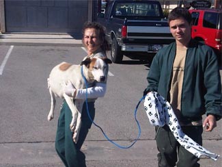 As you can see from the photo, Liselle was not feeling well. She is about to give birth to her puppies and on top of that she has kennel cough. Poor girl really was not at her best. The staff carried her out and gently put her in the kennel and we made her as comfortable as we could for her ride to the vet’s office where she will be staying for a while. How long I don’t know, given her complications. I am sure we will be seeing her again with her little ones in tow. Sweet Cheeks is the little brindle pup that I also pulled and took him to a different vet’s office. He also has kennel cough, but he was still going strong and everyone at the office fell in love with him. What’s not to love about a puppy?