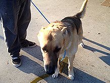 Today was the second day of going out to a shelter far, far out in the desert and collecting shepherds. Got 8 out this week for a rescue that does German Shepherd rescue; they really wanted them and now they have them. All were very sweet and really great dogs. And big. The largest was at least 90 lbs but well built. Most were in the 70 lb range. And they all had to go pee, as you can tell from the photo. I am so glad they got out and I am sure they are too. Soon they will be at their new fosters and then hopefully on their way to a much better place than before.
