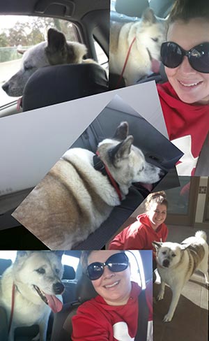 I loaded these two up at a no kill shelter and transported them to a meet up location in central CA. They were great on the ride north and when we got there they were both let out for a potty break; then one was loaded for her trip farther north and the husky was reloaded and we waited for her ride to show. I left the slip lead on him as it was very difficult to get on in the first place. When the other transport showed up, I reached in grabbed the lead and out she jumped and I was standing there holding half of it. She ran around McDonalds for a few minutes then came back. Heart attack time. All ended well and then off she went to a foster home and hopefully gets adopted soon.