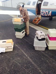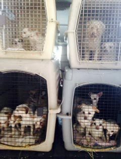 Today I went back to the barn that was housing the white chihuahuas that were saved from the hoarder out in the desert (see the January 29 transport for details). They have been there for 2 days and not quite knowing what to expect from anyone. Today was their flight to freedom and I was there at the crack of dawn to gather the flock together. Well, they had other ideas. If you can image 15 white chihuahuas, not overly friendly, loose in a 12×12 horse stall with hay and what-not on the floor, trying to elude capture, you would have some idea of the setting. They kept going round and round and there was no way I was going to corral these chickens. Finally I asked two of the horse handlers for help and we slowly started to gather them one by one. Then it was finally over. All were safe in their kennels and ready to hit the road. I will say that this has been one of the more difficult capture and transports I have done in quite a while. All are safely on their way and next week we do it for the second group. What fun awaits me then.