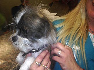 Today I went to pull this little 5 lb terrier and when I got there it was a choice of adopting or waiting around a number of hours so I could pull her from the shelter as a rescue. Well. One look at this little girl and it was adopt. Now. So I adopted her for the rescue and she didn’t have to spend one more minute behind bars. Off we went to the vet and after a few shots she will be on her first airplane ride heading north. She will be well received by her new family and will be re-adopted in very short order, I am sure of that. She was so sweet and just wanted to be held. I am sure she was very frightened at the shelter and now she has a whole new world awaiting her. I wish all could be as lucky.