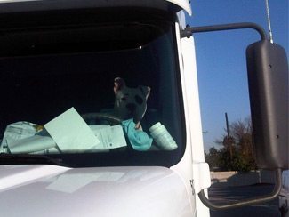 Today I picked up Popeye from our Simi holding facility, and Buster from the vet hospital where he was being treated for kennel cough and is now all better. As you can see Popeye wants to go. He took to the big rig like a pro and Glen had his hands full until Popeye realized he had to ride in the passenger’s seat. Oh well, better than a crate. Buster couldn’t care less where he rode, as long as it was moving away from here. They both were very excited being in the big rig and they did settle down after a bit and were perfect passengers on their new journey that we all hope ends with a perfect forever home for these lovable guys. Bon voyage guys…