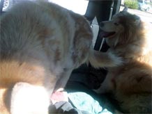 I just happen to be at the Camarillo shelter trying to straighten out paperwork issues with the staff there, when Mary from up in Oregon called and said she would like to take the two senior huskies in one of the pens. Would I pull them for her? Of course I would! As I knew of the rescue they would be going to, I asked them where they were. Well they were on the other side of the grapevine, but were willing to turn around and come to Camarillo if I would pull those two gentle giants. Now remember they have been at the shelter quite a while and everyone was fearful that any day, like this coming Tuesday, they would be killed. I told them to turn around and I would do the paperwork while they were on their way and they would be set to go when they arrived. Well I got it all done and they showed up around noon, we went over paperwork, releases and such, had the dogs brought out and as you can see from the pics they were ready to go. They settled right in the back of the car like it was their own and they wanted to get out of dodge. As you can see from their coats, they haven’t had the best of care and I mentioned to Mary that the fur will fly once she starts heading down the road and the wind starts blowing. These two didn’t stand a chance of living one more week, now they are on a new adventure. You just never know how these things will play out.